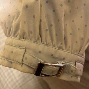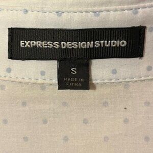 Express Design Studio white 6 button shirt with subtle pale blue polka dots