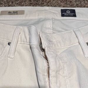 White corduroy AG jeans. Adriano goldschmied. “The stilt” cigarette leg. Size 30r. Stain on leg.