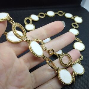 White disc shell cameo necklace