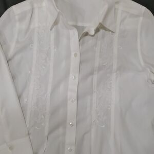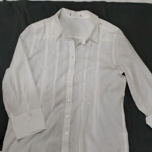 White embroidered button down blouse