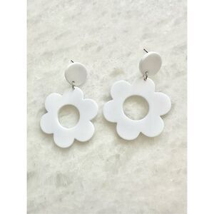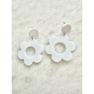 White flower mod dangle earrings