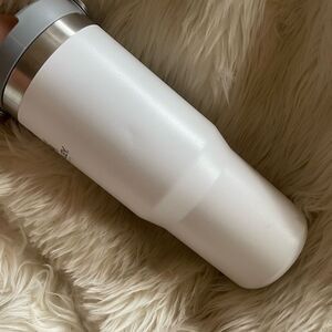 White and gray Stanley water bottle