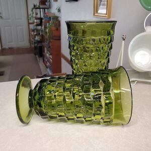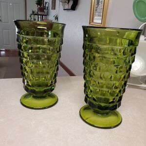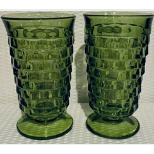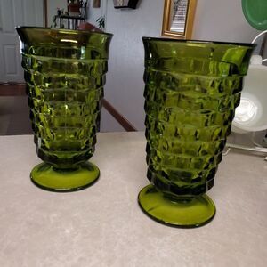 Whitehall Cube Avocado Green Iced Tea Footed Glasses 6" Set of 2. Condition is Used. Shipped with USPS Priority Mail.