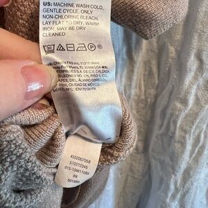 Whitehouse Black Market tan sweater. Zip up, half sleeves. Rounded bottom.