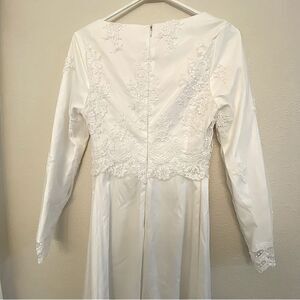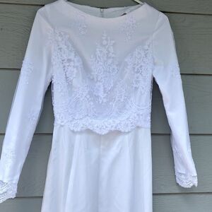 White lace Long Sleeve wedding elopement modest Courthouse LDS Temple dress S