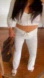 white ruched front flare bottom lounge pants and white long sleeve crop top