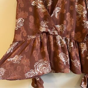 Whiteroom + Cactus brown floral long sleeve top. Kind of sheer, no lining.