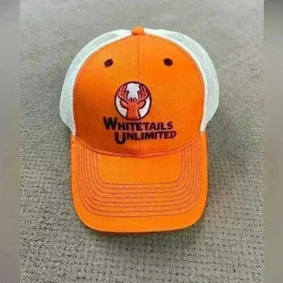 Whitetails Unlimited Men’s Orange/White Mesh Adjustable Strap Back Trucker Hat