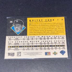 Whitey Ford New York Yankees Pitcher Cooperstown Collection Classic Vintage Upper Deck Score Pro Set NFL NBA MLB Topps Fleer Panini Premium Ultra Collectors Set Edition Collectible Choice Rookie All Pro Record Holder Breaker MVP Super Bowl Championship PSA Graded Good Great Fair Fine Condition Trading Sports Cards Basketball Baseball Football Professional Team Fan Pristine Fanatic