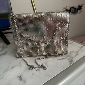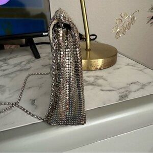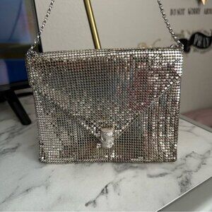Elevate your evening ensemble with the timeless elegance of the Whiting David Vintage Silver Mesh Bag.