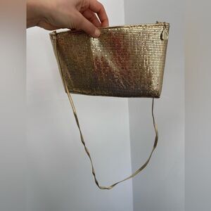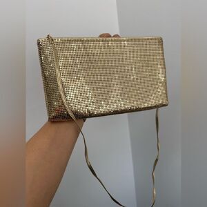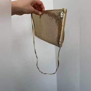 Whiting & David Gold Chain Mail & Leather Shoulder Bag Clutch Evening Bag