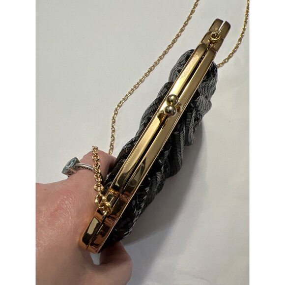 Whiting & Davis Black Chain Mail Bag With Gold Frame & Chain Strap