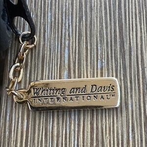 Elegant vintage Whiting & Davis International clutch in glossy black enamel mesh. Classic design with flexible metal mesh exterior, black fabric lining, and both zippered and snap compartments for secure storage. Features original gold-tone Whiting & Davis International hangtag.