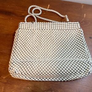 Whiting & Davis Co Alumesh Bags Vintage Handbag White Metal Mesh Handles 1940s