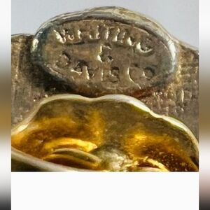 These are a RARE find! Beautiful vintage signed Whiting & Davis Co earrings! These are gold tone with a peachy pink frosted glass and are pierced.