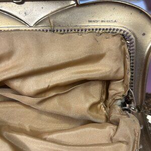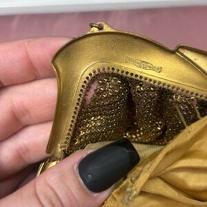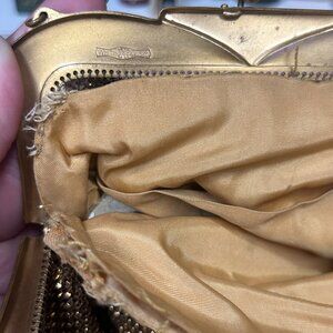 Awesome Whiting and Davis kiss clasp evening bag in their classic gold tone mesh.
