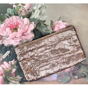 Whiting & Davis Gold Mesh Evening Bag Zippered Clutch Vintage Holiday Party NYE