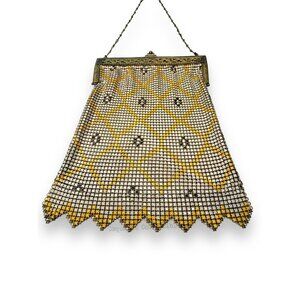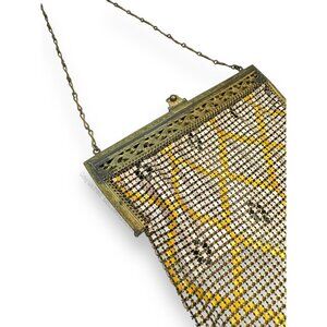 Whiting & Davis Mesh Chain Maille Yellow Painted Hand Bag Antique Art Deco