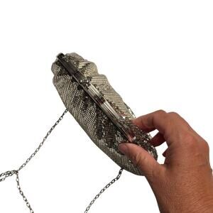 Whiting & Davis Mesh Clamshell Mini Bag Link Chain Strap Silver