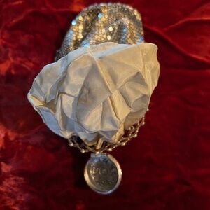 Whiting & Davis Silver Mesh Purse Beggars Purse--Expandable Gate Neck W/ Chain