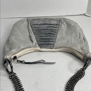 Whiting & Davis Silver chainmail mesh snakeskin leather boho shoulder bag