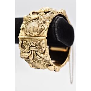Whiting & Davis Vintage Bangle Bracelet Intricate Gold Chunky Signed 1950s Bin7