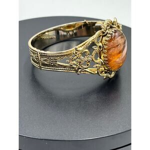 Whiting & Davis Vintage Ornate Victorian Revival Gold Tone Lg Cabochon Bangle