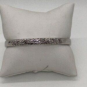 Whiting & Davis Vintage Silver-Tone Etched Floral Bangle Bracelet 7 Inch