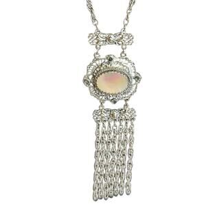 Whiting Davis silver toned statement mother of pearl Drop Necklace 22 inch