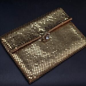 Whiting and Davis Gold Tone Mesh Clutch Coin Purse Vintage