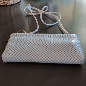 Whiting and Davis International White Metallic Mesh Shoulder Evening Bag Clutch