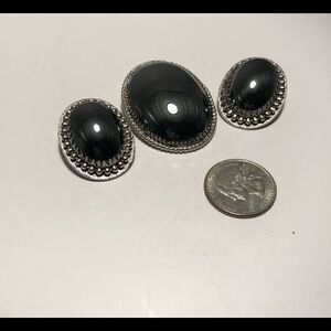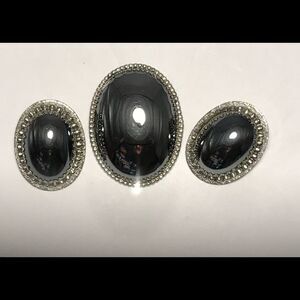 Whiting and Davis Hematite StoneVintage Brooch and Earring set