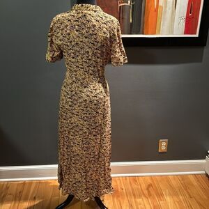 Whitles shades of brown/black button front tie waist shirt dress. Size 6. NWT. Derived from certified renewable wood sources, LENZING™ ECOVERO™ viscose uses a responsible production process, generating up to 50% lower emissions and water impact than generic viscose. Designed in a shirt-style, the midi dress comes with short sleeves and a tie belt that cinches in the waist. Add gold earrings, a pair of sandals and your favourite sunglasses and let the print do the talking.