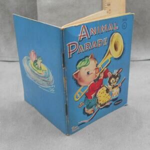 Whitman Tiny Tales #2952 Animal Parade 1949 Antique Children's Book. Cover has some wear around the edges. Pages inside are yellowed from age but no rip or markings. Great colorful lithographs. Please see pictures.