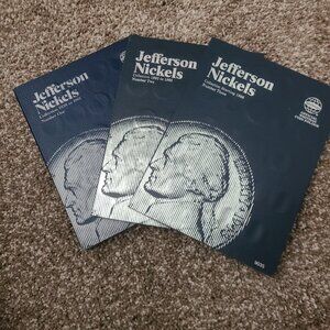 3 Jefferson nickel folders: 1938-1961, 1962-1995, 1996+. In great condition. 87 of the 198 spots are filled.