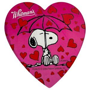 This plush Snoopy in a tuxedo includes a heart-shaped Whitman's candy box, making it a charming gift for Peanuts fans and collectors. Candy box is empty.
