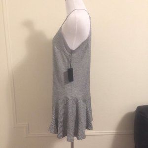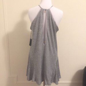 New with tags Whitney Eve women's size 4 trapeze dress. Gray/silver metallic. Really neat textured fabric. Lightweight with a relaxed fit. Halter style neckline with button closure. Long Keyhole slit on upper back. Lined. LOVE this!
