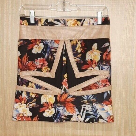 Women’s Whitney Eve new with tags floral skirt with faux leather trim 4. Great condition! Measurements are: 28” waist, and 17” length. Women’s Whitney Eve new with tags floral skirt with faux leather trim 4. Great condition! Measurements are: 28” waist, and 17” length.