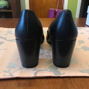Navy leather pumps with 2.5" heel. In pristine condition.