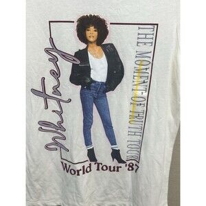 Keywords: Whitney Houston, The Moment of Truth Tour, World Tour 87, Graphic Tee, T-Shirt, Concert Shirt, Vintage Style, Retro, Music, Pop, 80s, Band Tee, New With Tags