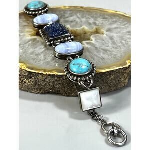 Whitney Kelly Sterling Silver Multi Gemstone Turquoise Lapis MOP Bracelet- 51.8g