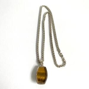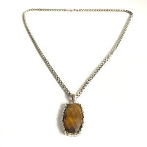 Whitney Kelly Tigers Eye Necklace Sterling Silver Enhancer Pendant Heavy Chain