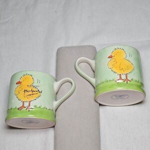 Whittard of Chelsea Easter 2005 Handpainted Set of 2 Ceramic Coffee Tea Mugs