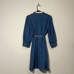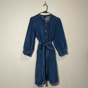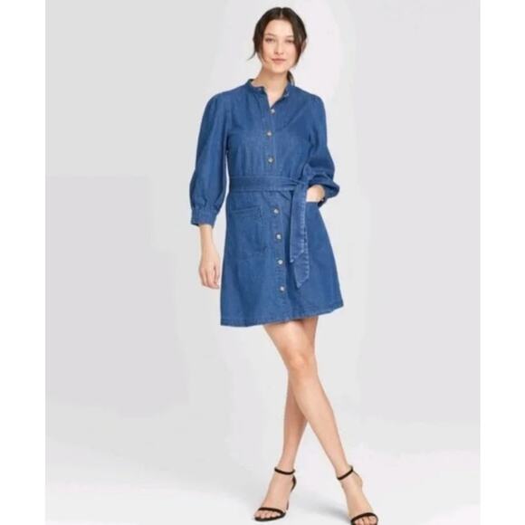 Who Wear What Denim Tie Waist 3/4 Puff Sleeve Mini Dress - Large