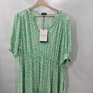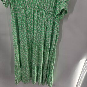 Who Wear What Green White Prairie Floral Cottagecore Tiered Maxi Dress XXL