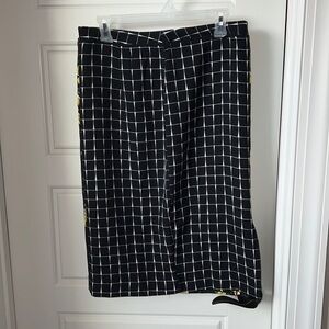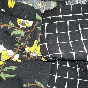This skirt is brand new. The front of the skirt is plaid in the back of the skirt is floral you can definitely switch it around. It has a zipper on the side and a split at the bottom.