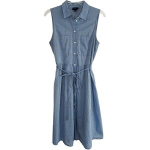 Who What Wear A-Line Shirt Dress Medium Sleeveless Lined Button Front Tie Back