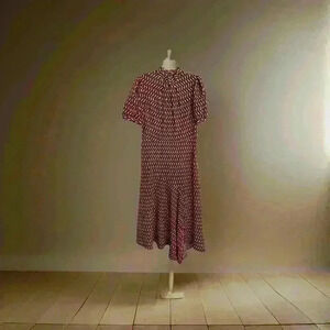 Tri color patterned dress. Asymmetrical hemline. EUC