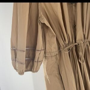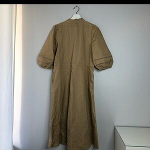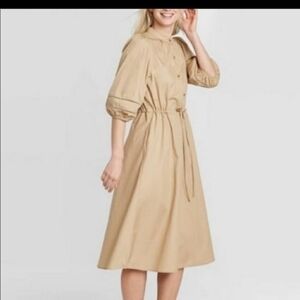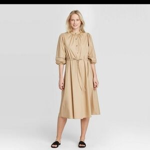 Who What Wear Beige Midi Dress tie waist puffy sleeves size XS khaki