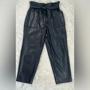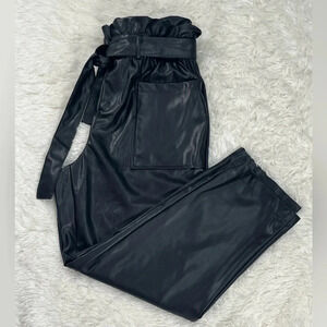 Who What Wear | Black Faux Leather Belted Paper Bag Pants